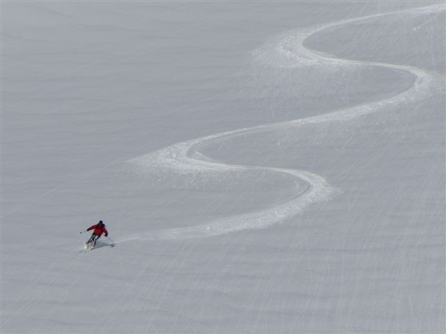De enige die niet afziet deze dag is An, na een goed winterseizoen in de Alpen is ze beter in vorm dan ik. Peter en Jo zijn ons mee gevolgd tot aan het Winnebacher joch op 2788m en samen dalen we weer af, opnieuw door uitzonderlijk lichte poedersneeuw, dankzij de extreme koude. Aan de auto moet ik mijn tenen ontdooien, oehwaah pijnlijk! Gelukkig wacht ons in Praxmar de dagelijkse sauna, die alle lijden doet vergeten. Ook het avondmaal en de uitgelezen wijn helpt, al is dat vooral goed om in te slapen en minder voor vrieswonden ;-) Deze nacht sneeuwt het nog een beetje bij, yeah!