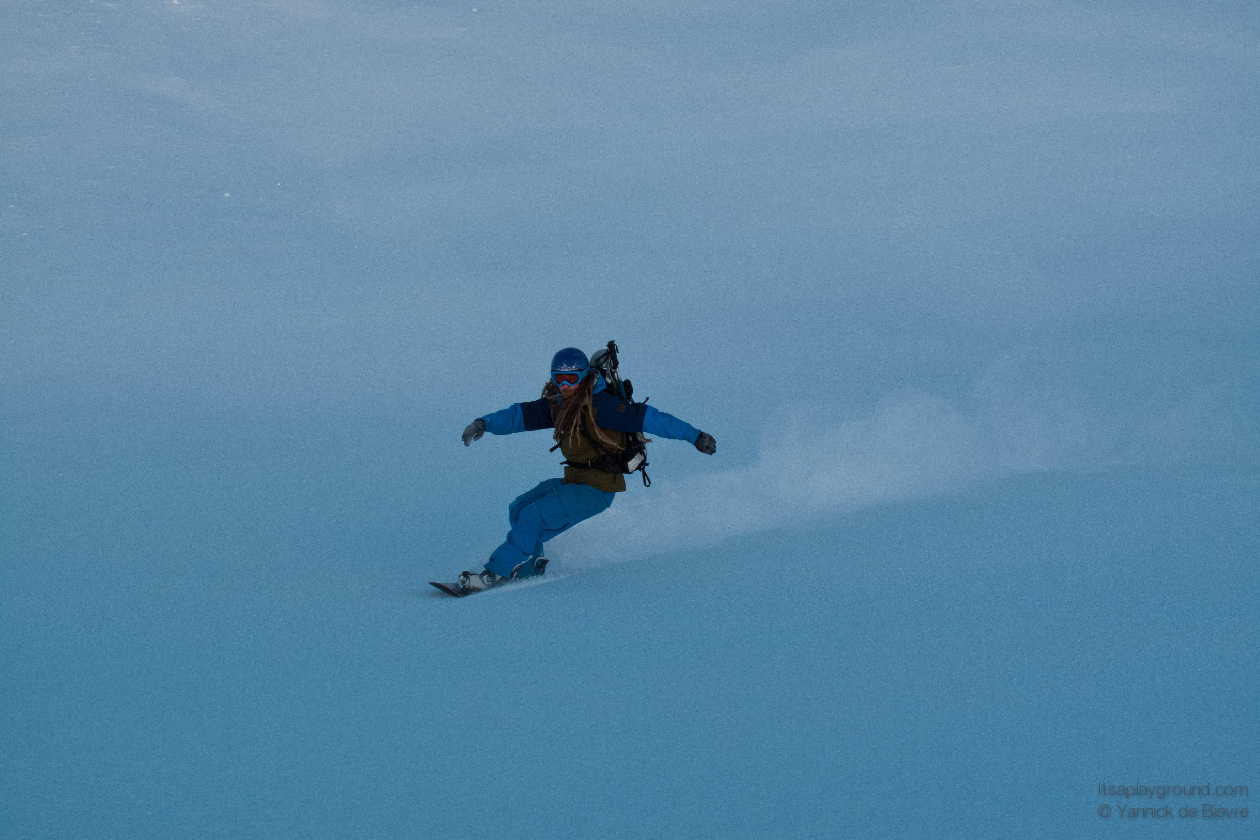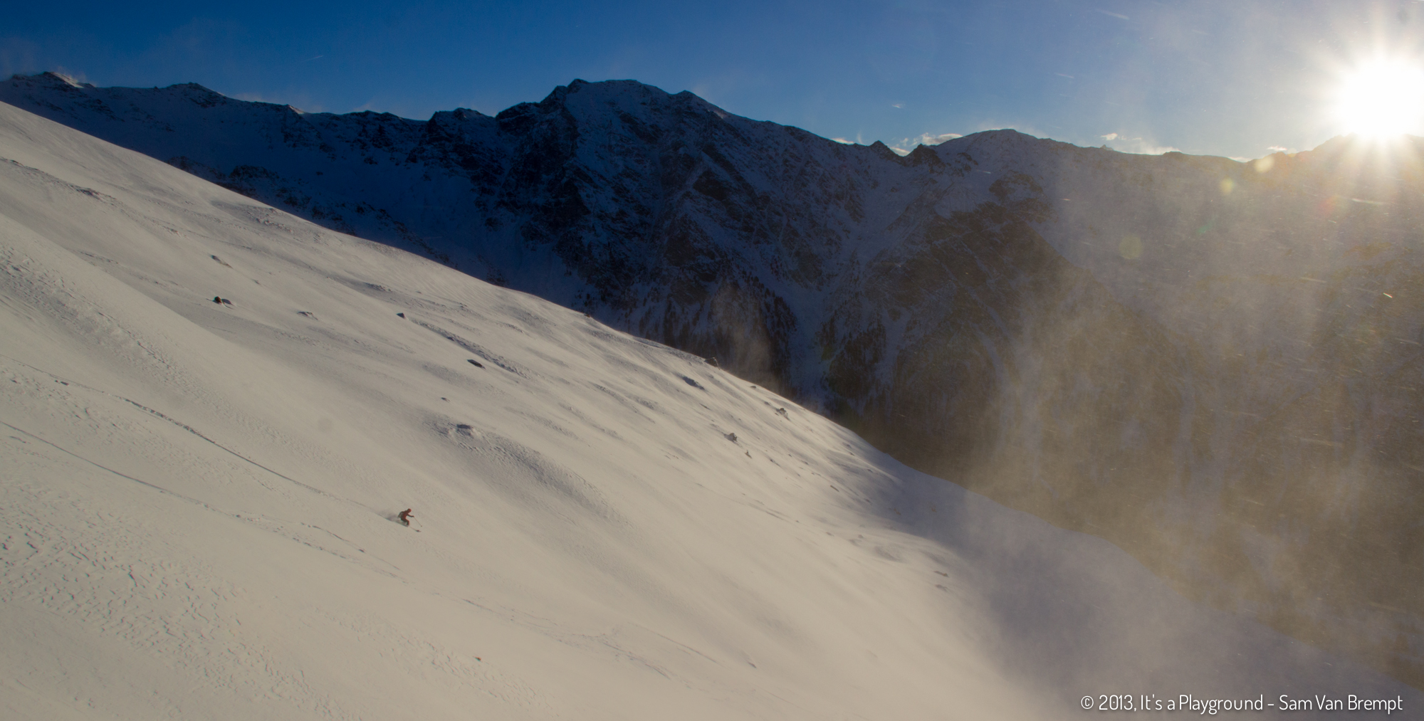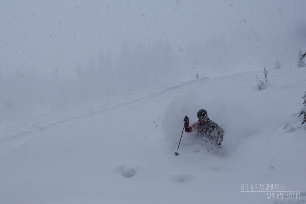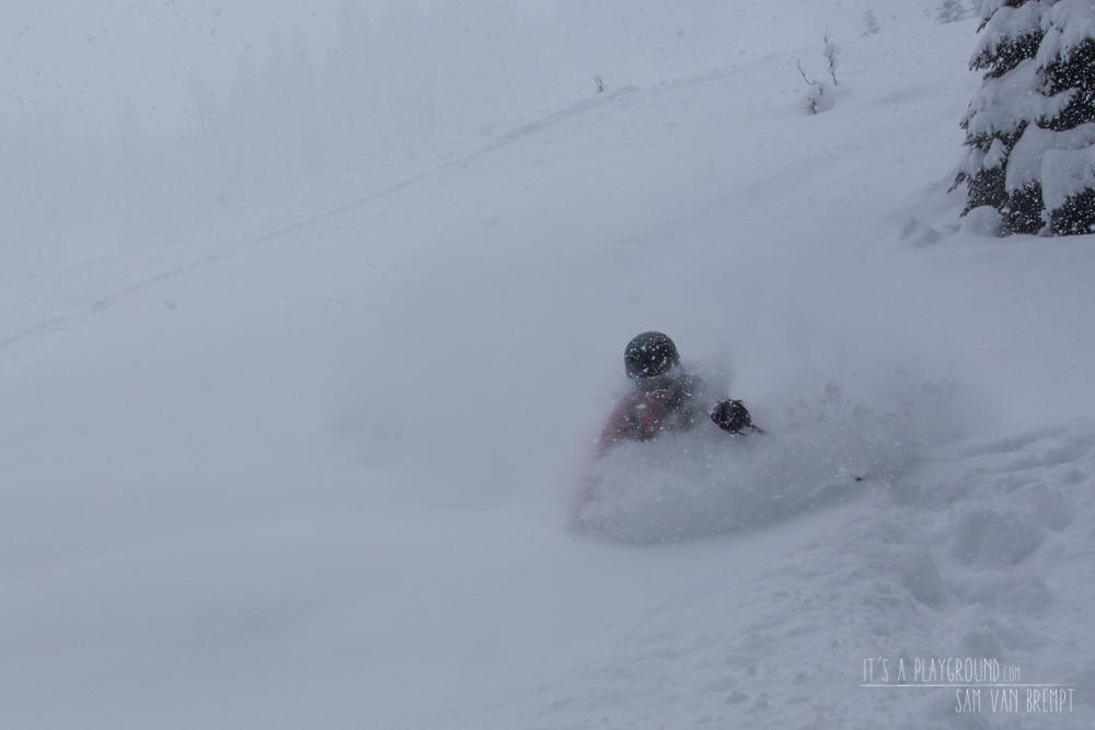 De sneeuw was aan het vallen terwijl het erg koud was, wat resulteerde in ongelooflijk lichte sneeuw. Sam durfde zelf de term ‘japow’ in de mond nemen…