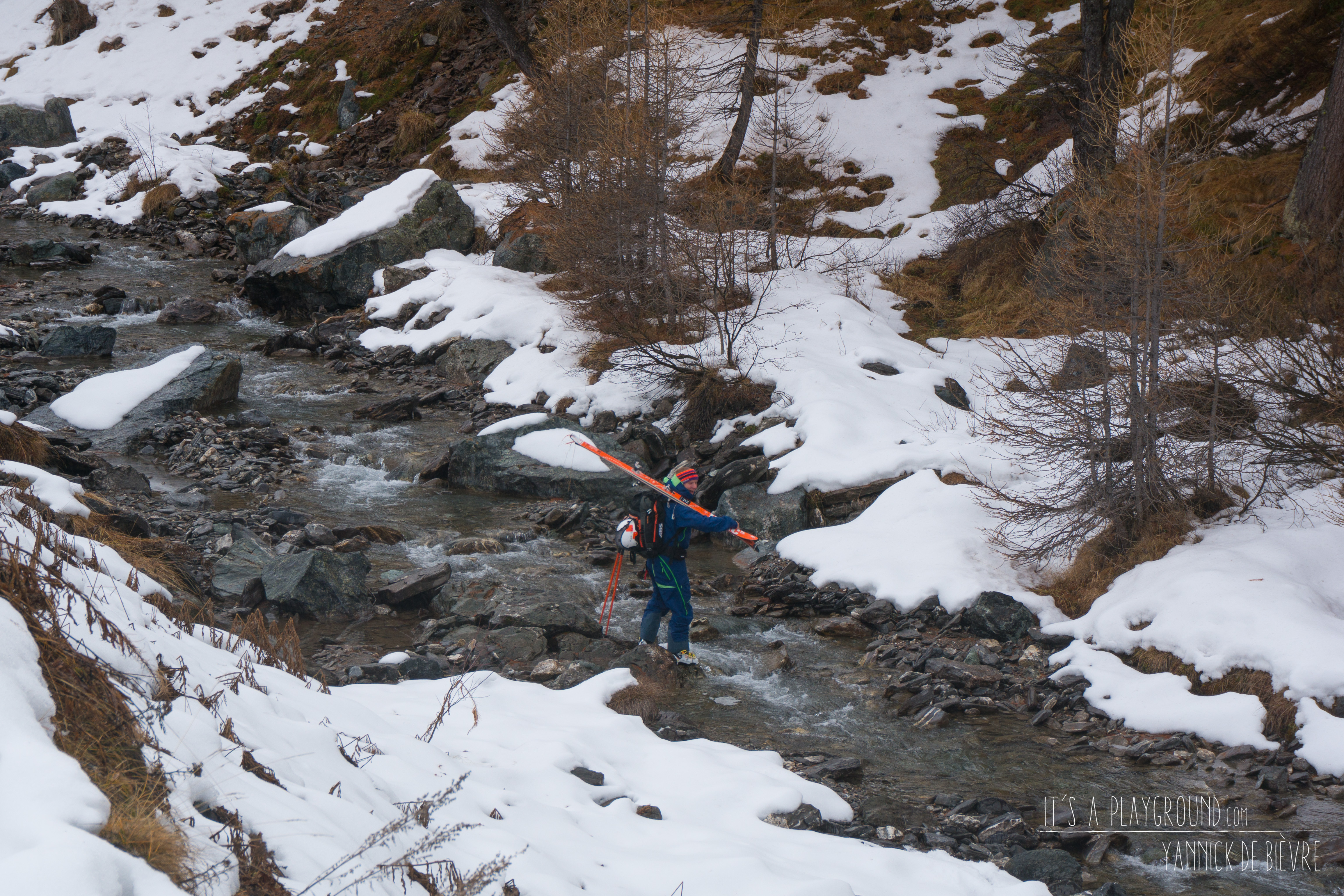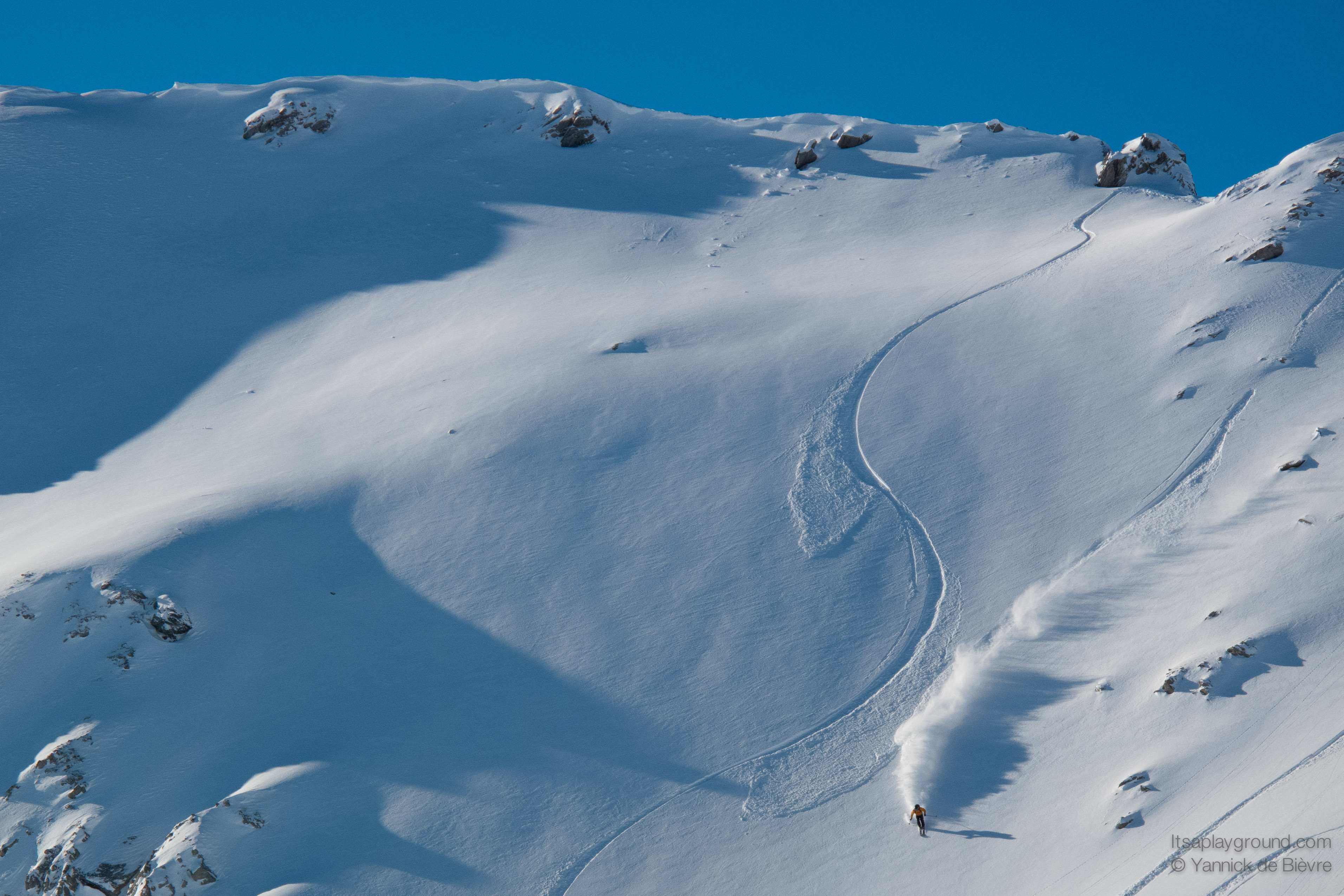 Het hoge lawinegevaar zorgde ervoor dat we de volgende dagen goed moesten evalueren wat mogelijk was en wat niet. Gelukkig kwamen Rogier Van Rijn en zijn vrouw, Sandra Prat, met ons mee. Zij wonen in de regio en namen ons mee op sleeptouw in Puy-St-Vincent, een skigebied in de Franse Zuidalpen dat nog niet open was. We kon snel vorderen over de semi-geprepareerde pistes en hadden enkele magnifieke afdalingen. Diepe sneeuw en een prachtig zonnetje, veel beter kan het niet worden op 2 december…