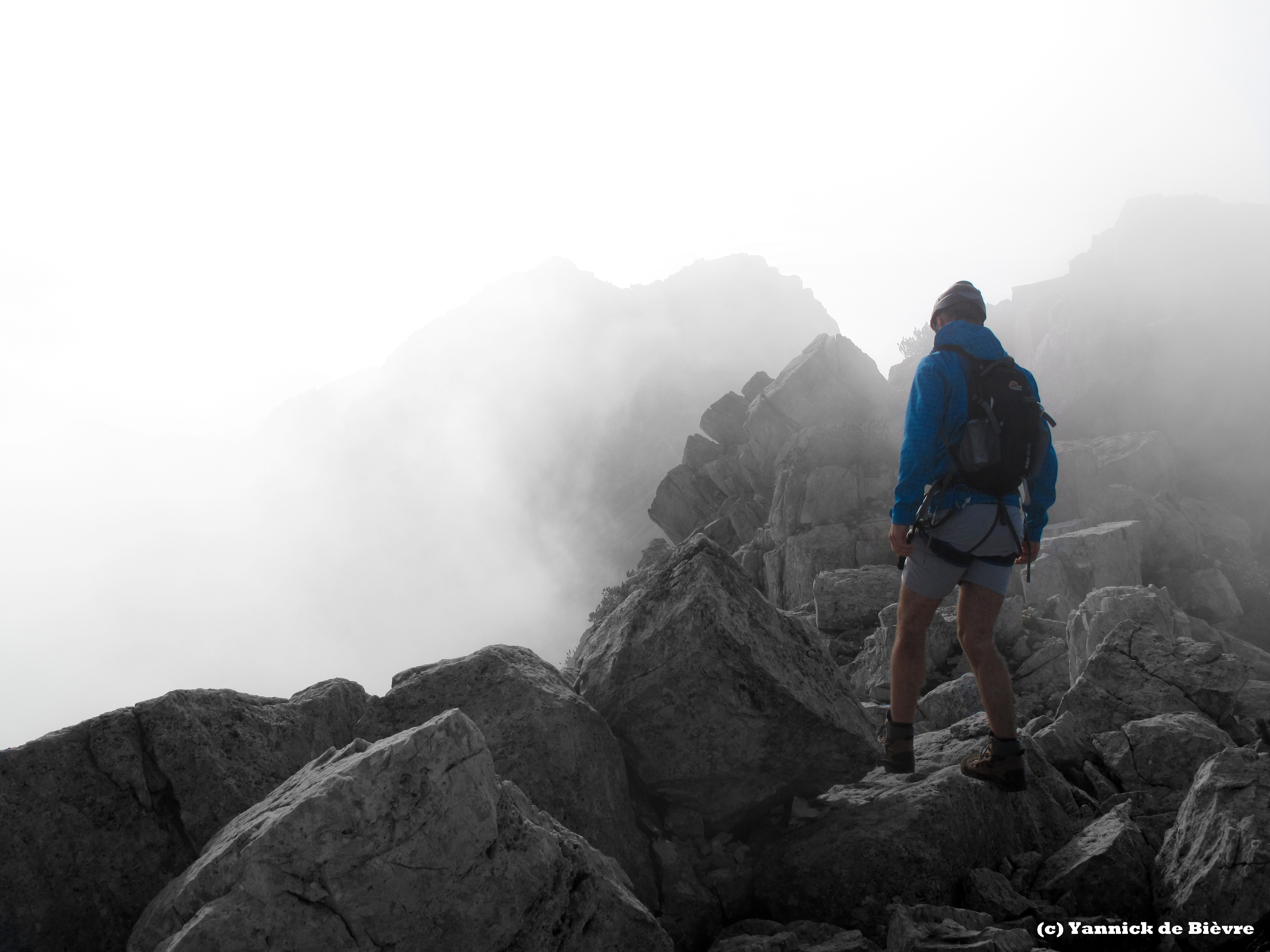 In de couloir Nord bleek nog geen vlok sneeuw te liggen wegens te felle wind, dus daalden we maar rustig af via de zuidwand onder een aangenaam zonnetje.