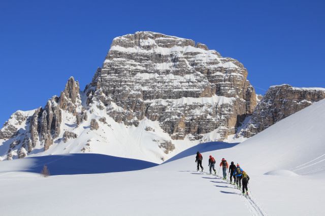 Aan alle mooie verhalen komt een einde, maar om op zaterdag niet in de file te gaan aanschuiven, ronden we de stage af met een wondermooie skitour rond de wereldberoemde 3 Cime di Lavaredo, ook wel de Drei Zinnen genoemd. Hiermee sluiten we deze mooie maar moeilijke week af in schoonheid. Als we thuiskomen is het in België maar liefst 21°C, de overgang van winter naar zomer kon niet bruusker. Maar deze beelden blijven wel in onze herinneringen: